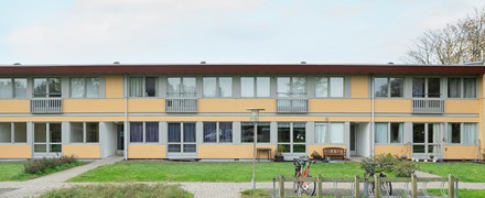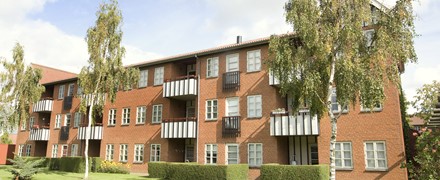 Lavt etagebyggeri med svalegang opført i 1967. Boligerne har enten altan eller egen lille terrasse.