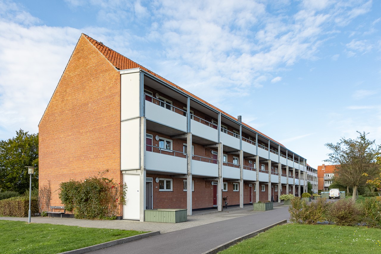 Lavt etagebyggeri med svalegang opført i 1967. Boligerne har enten altan eller egen lille terrasse.