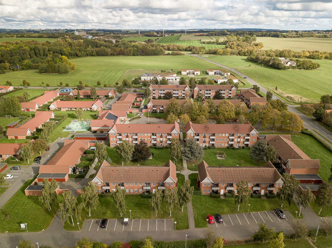 Området er omgivet af velplejede grønne områder, hvor der er lækroge med opsatte bænke- og bordesæt. Oplagt til hyggelige stunder i godt selskab - måske med din nabo.
