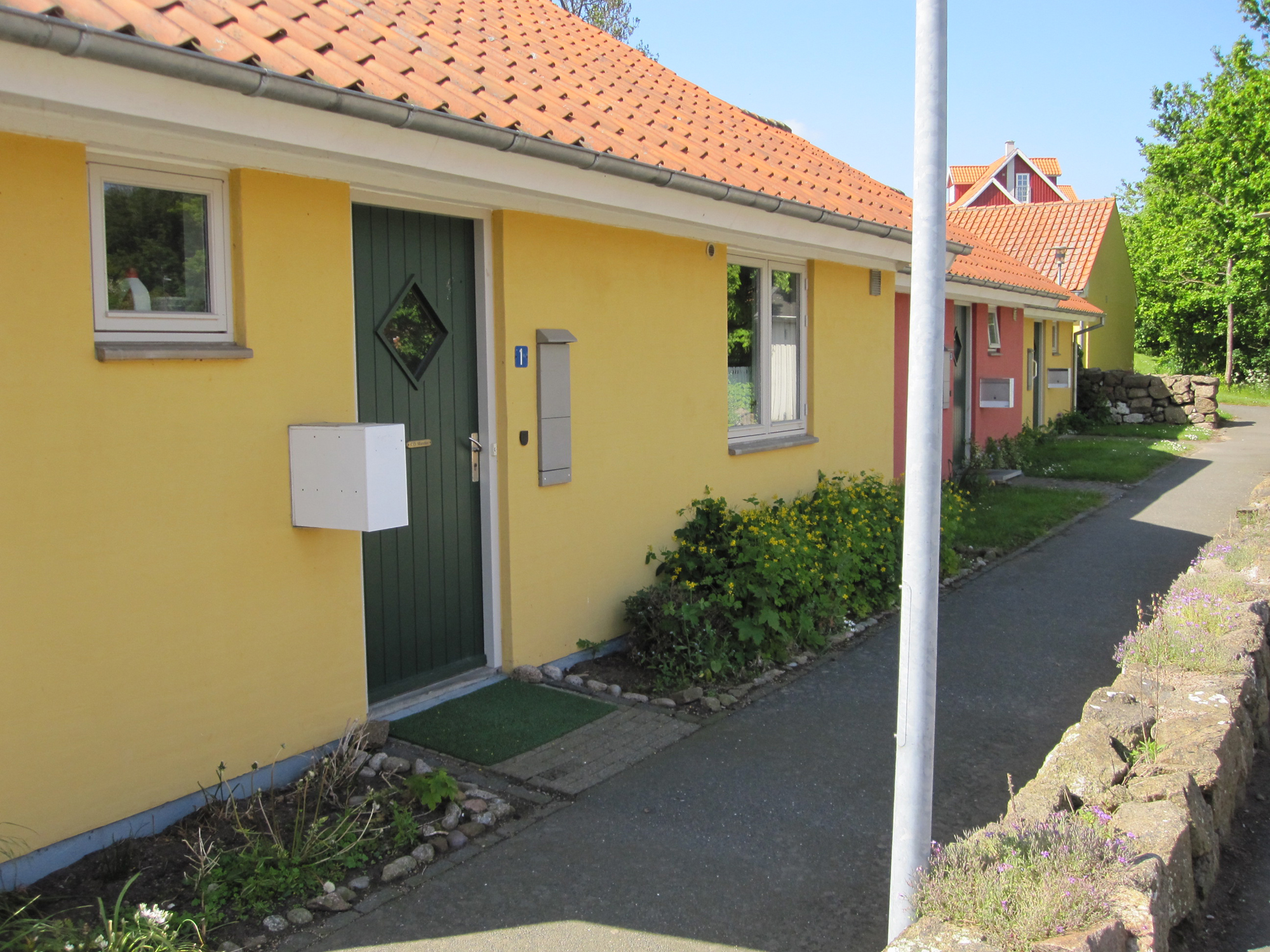 Række- og klyngehuse opført i 1972. I alt 34 boliger i Rønne. Fælles for boligerne er, at alle har egen individuel have.