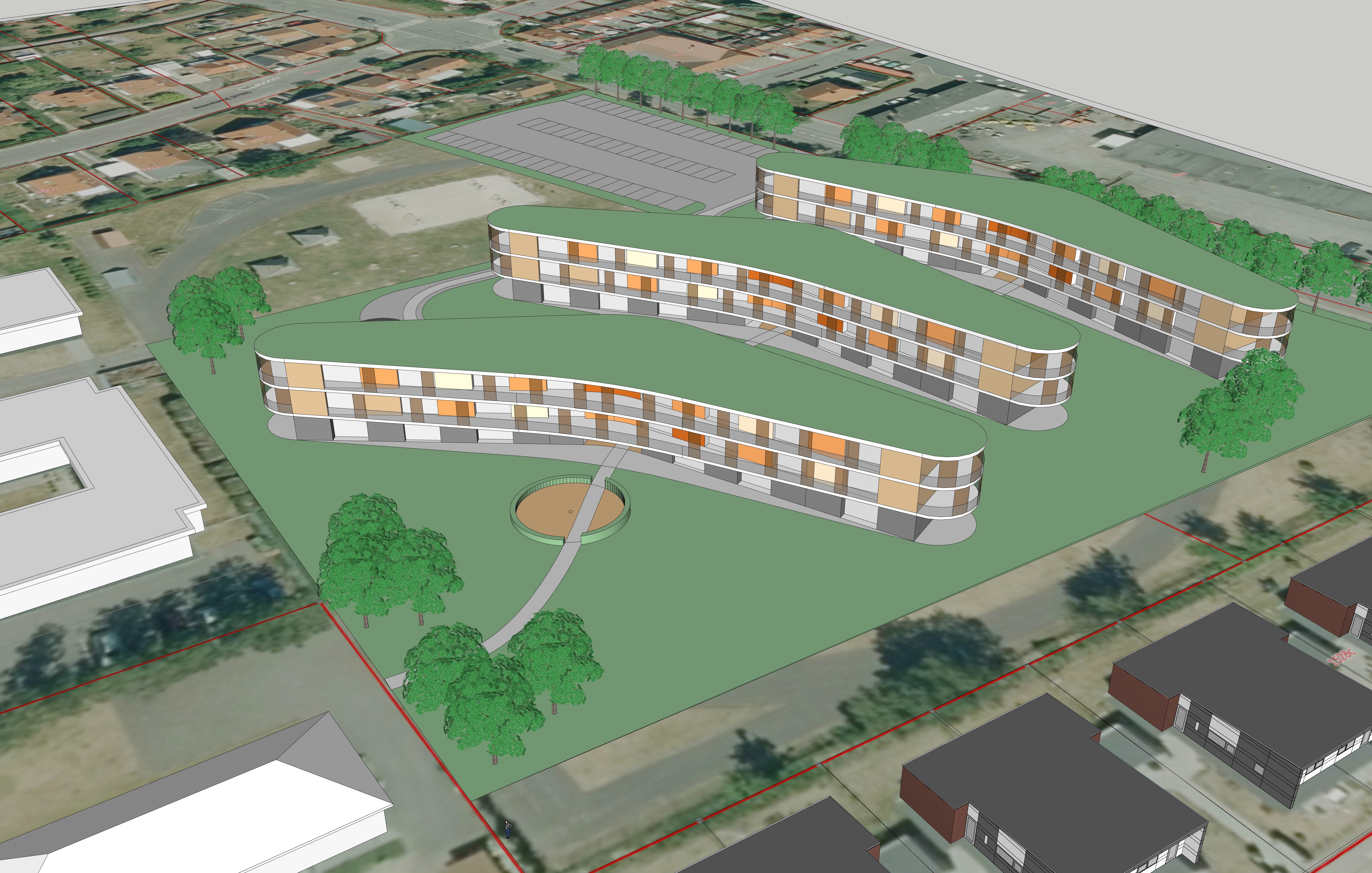 32 rummelige boliger i ensartede dobbelthuse, opført i 1950. Hver enkelt bolig har en relativt stor, ugeneret have med dertilhørende terrasse. Et roligt kvarter, ikke langt fra centrum.